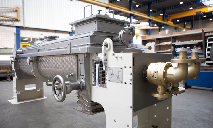 安德里茨推出的槳葉式污泥干化機(jī),采取直接進(jìn)料的方式,無需返混,適合處理各種濕度的污泥。內(nèi)部具有獨(dú)特雙軸轉(zhuǎn)動(dòng)設(shè)計(jì),進(jìn)入干燥機(jī)的污泥在槳葉的作用下形成充分的局部混合和機(jī)械流化作用,以熱導(dǎo)體進(jìn)行間接加熱,所含水分迅速蒸發(fā)。機(jī)體占地小,產(chǎn)生廢棄少,是中小型項(xiàng)目的首選干化方案。