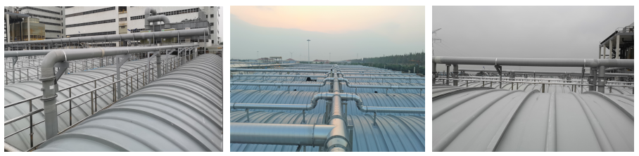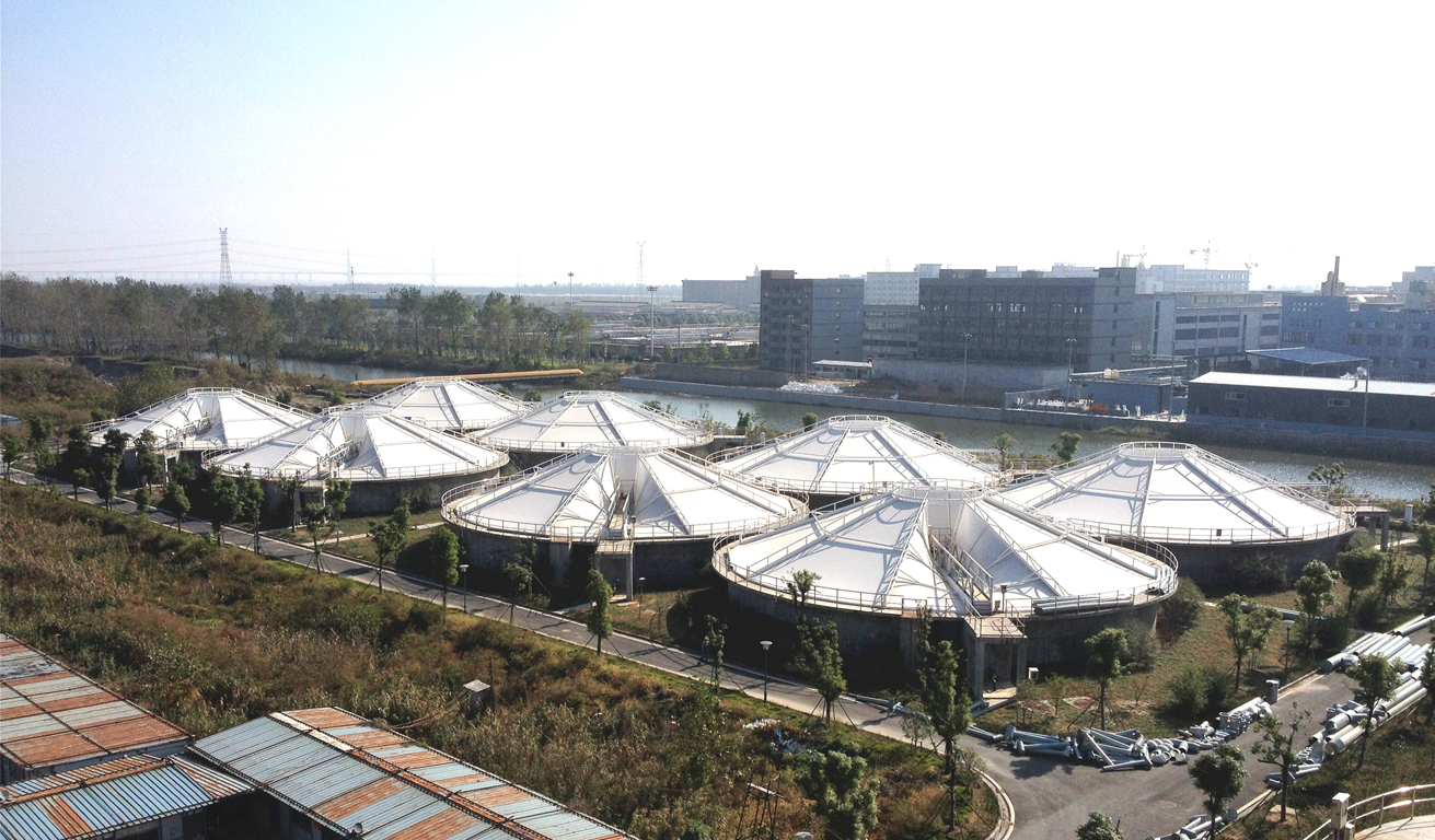 膜材自重輕,抗拉強度大,適于大跨度的池體