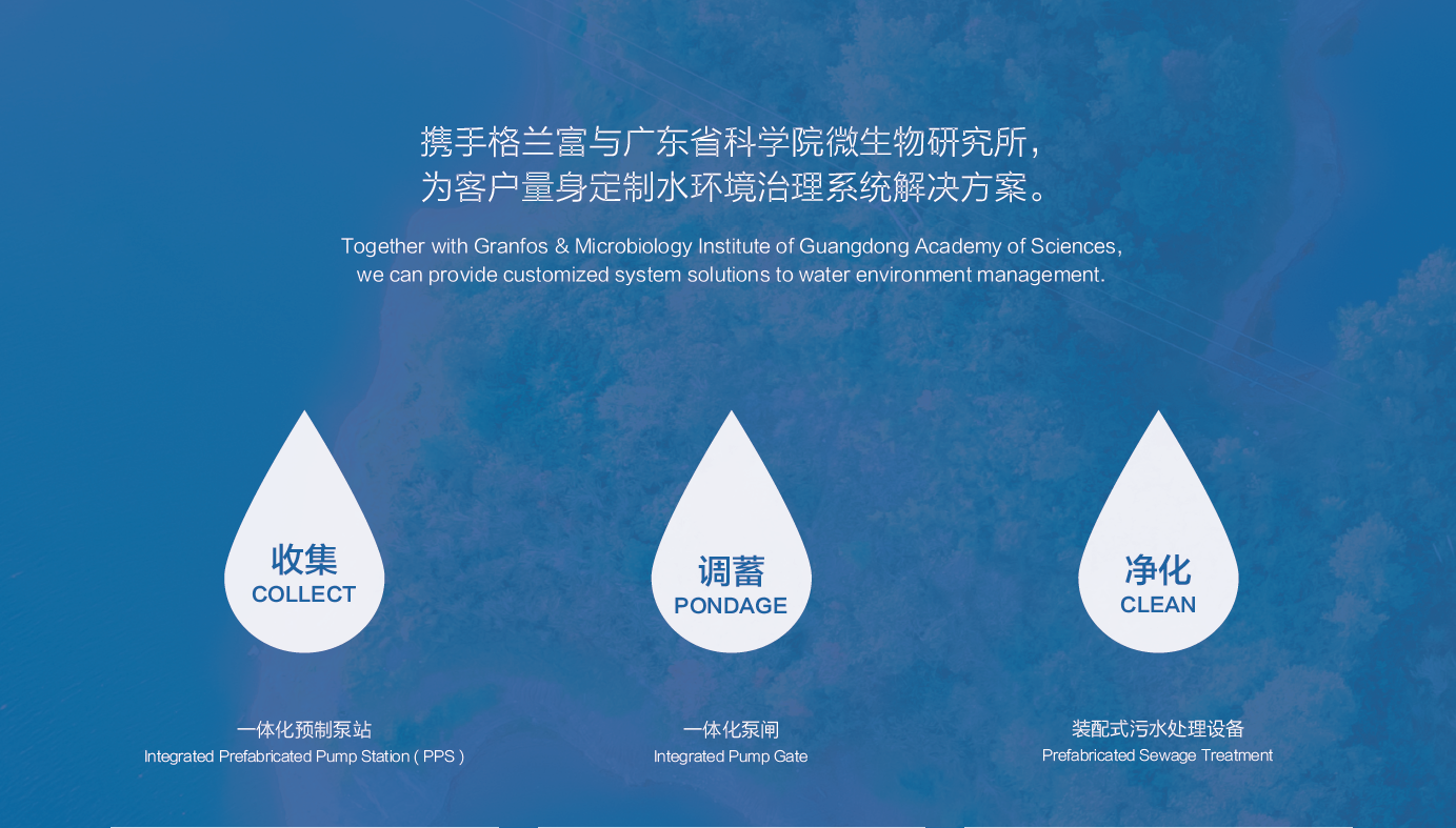 公司自主研發(fā)裝配式污水處理設(shè)備,針對(duì)村鎮(zhèn)污水特點(diǎn)提供分散處理解決方案,使水處理工程高度設(shè)備化、集成化,并攜手世界上最大水泵制造商格蘭富,為客戶提供一體化泵站、泵閘等供排水系列產(chǎn)品,從收集源頭到治理末端,我們給水環(huán)境修復(fù)的關(guān)鍵環(huán)節(jié)-截污治污,提供了高效、靈活、智能的系統(tǒng)解決方案。