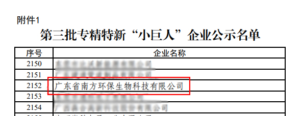7月19日,國家工業(yè)和信息化部發(fā)布了《關于第三批專精特新“小巨人”企業(yè)名單的公示》,廣東省南方環(huán)保生物科技有限公司榮登第三批專精特新“小巨人”企業(yè)名單!