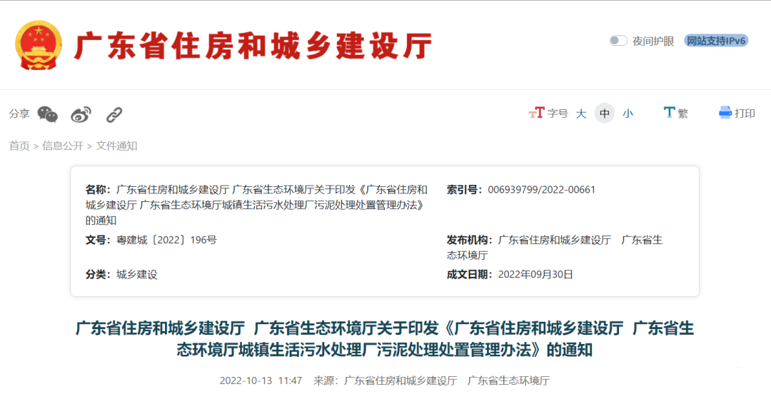 為進(jìn)一步加強(qiáng)全省城鎮(zhèn)生活污水處理廠(chǎng)污泥處理處置監(jiān)督管理工作,預(yù)防和減少污泥二次污染,促進(jìn)污泥資源化利用,省住房城鄉(xiāng)建設(shè)廳、省生態(tài)環(huán)境廳制定了《廣東省住房和城鄉(xiāng)建設(shè)廳廣東省生態(tài)環(huán)境廳城鎮(zhèn)生活污水處理廠(chǎng)污泥處理處置管理辦法》(下稱(chēng)《辦法》),該《辦法》于2022年11月1日起實(shí)施。