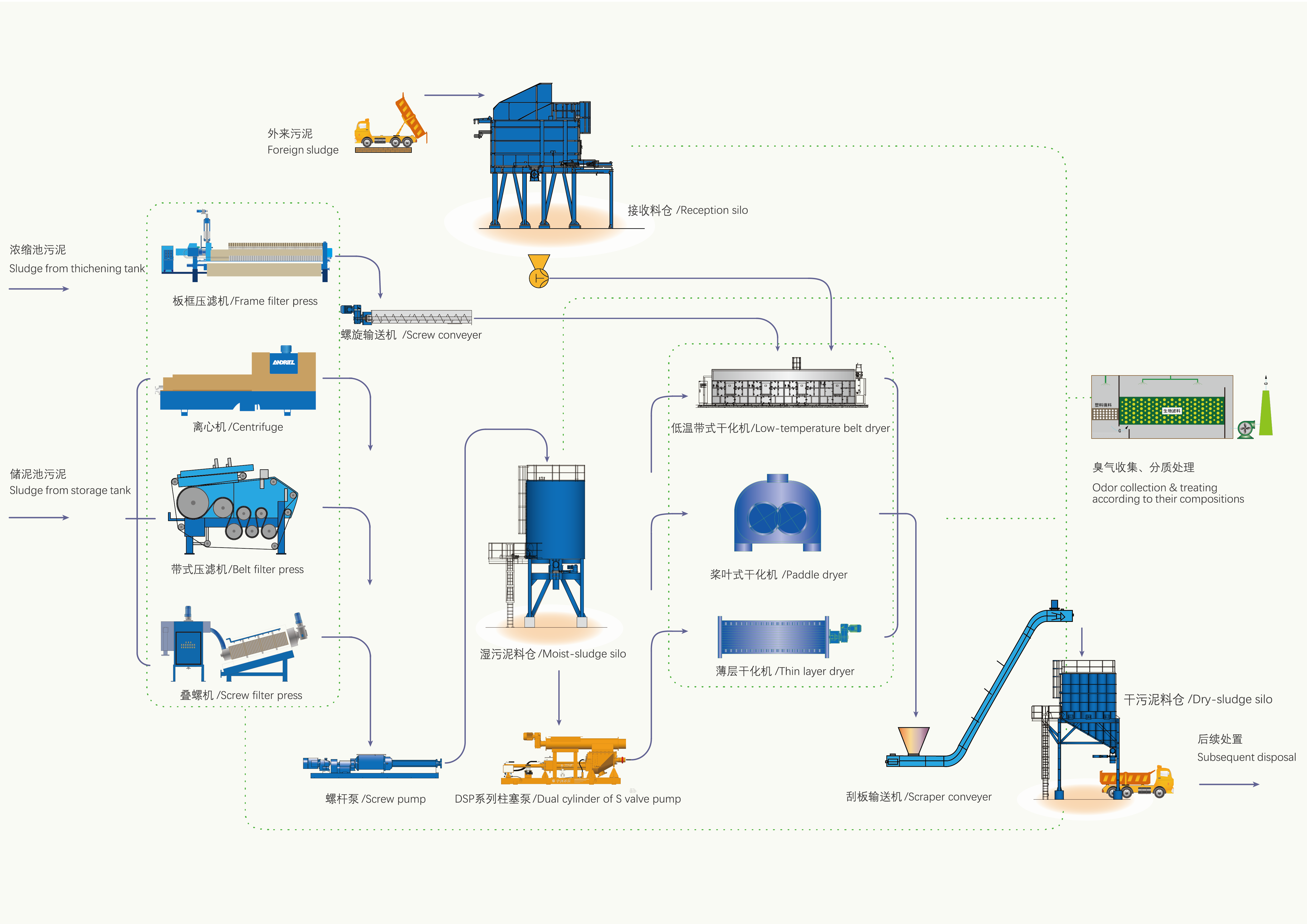 Technical Route of Sludge Dewatering, Storage, Transportation and Drying
